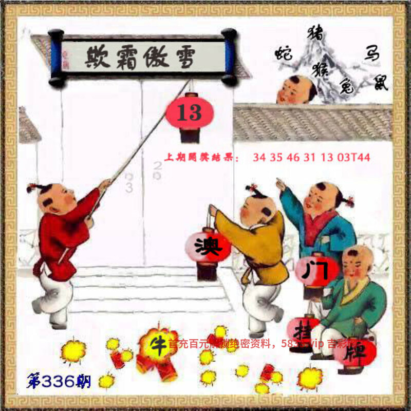 336期正版彩图挂牌:挂:13 爆:牛 挂牌成语:欺霜傲雪 挂牌出肖:兔蛇猪鼠猴马
